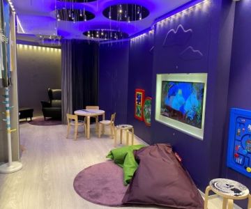 «Small play area and a baby care room on the top floor of the shopping center Forum. Comfortable chair for breastfeeding, microwave for heating baby food, small toilet for kids and some basic games. Nice deco with Moomin theme.»